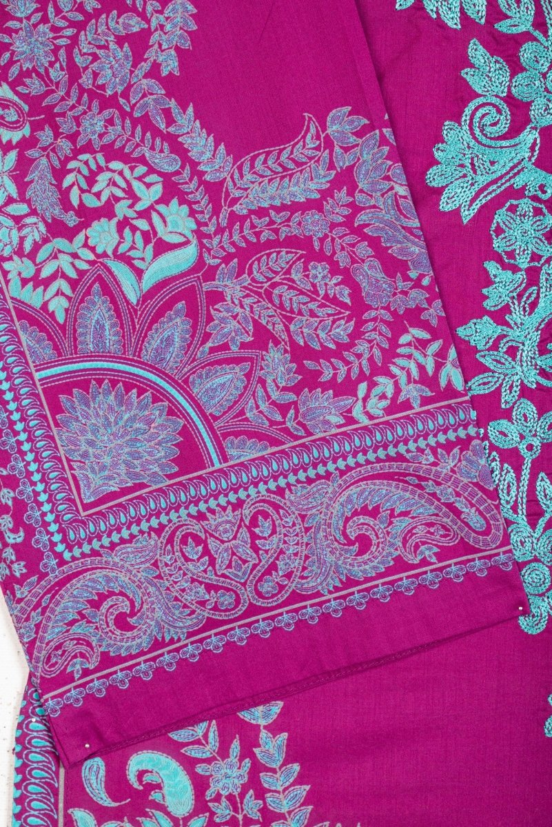 Embroidered cambic shirt with printed chiffon dupatta and trousers.