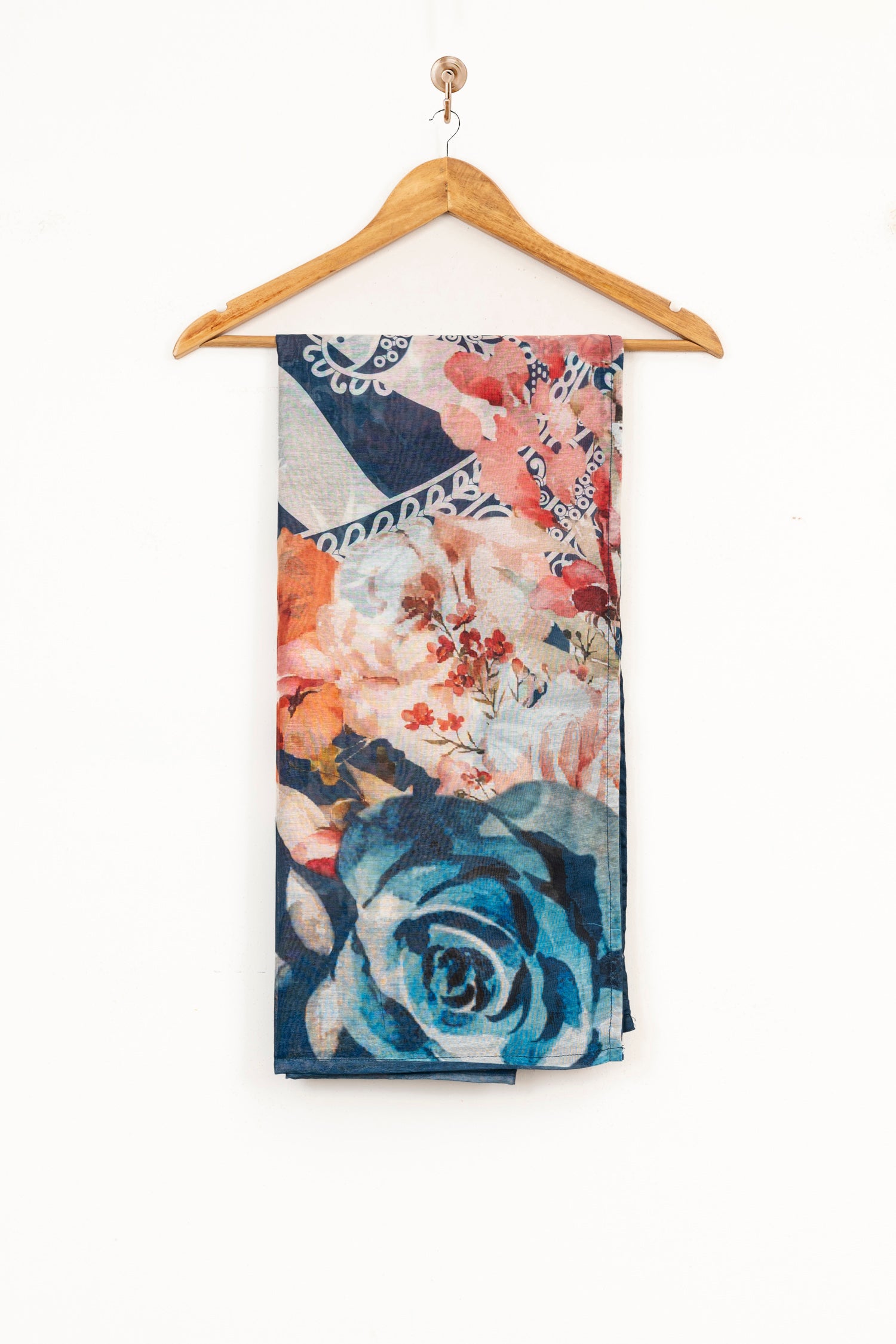 Printed lawn shirt with printed voile dupatta and cambric trousers.