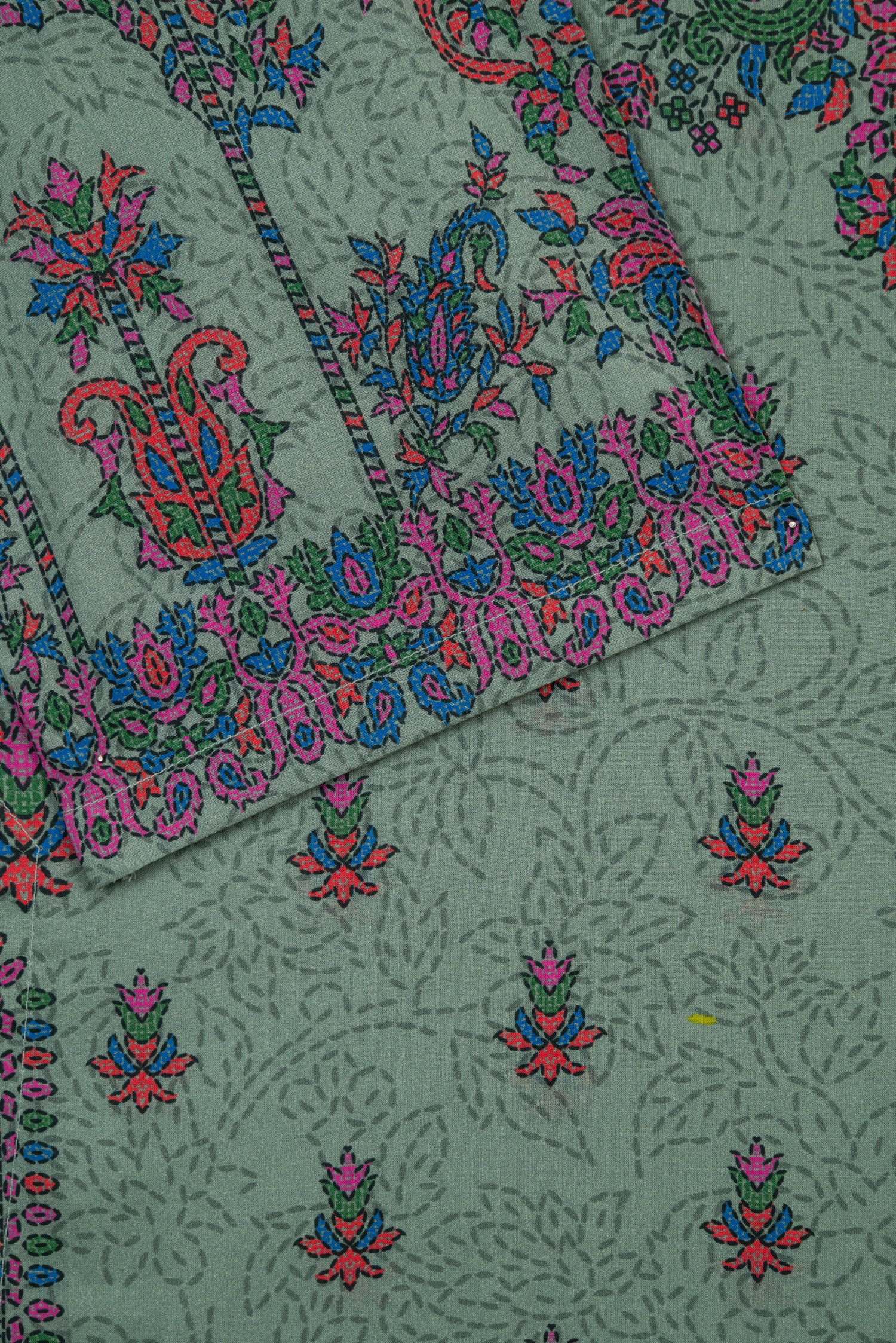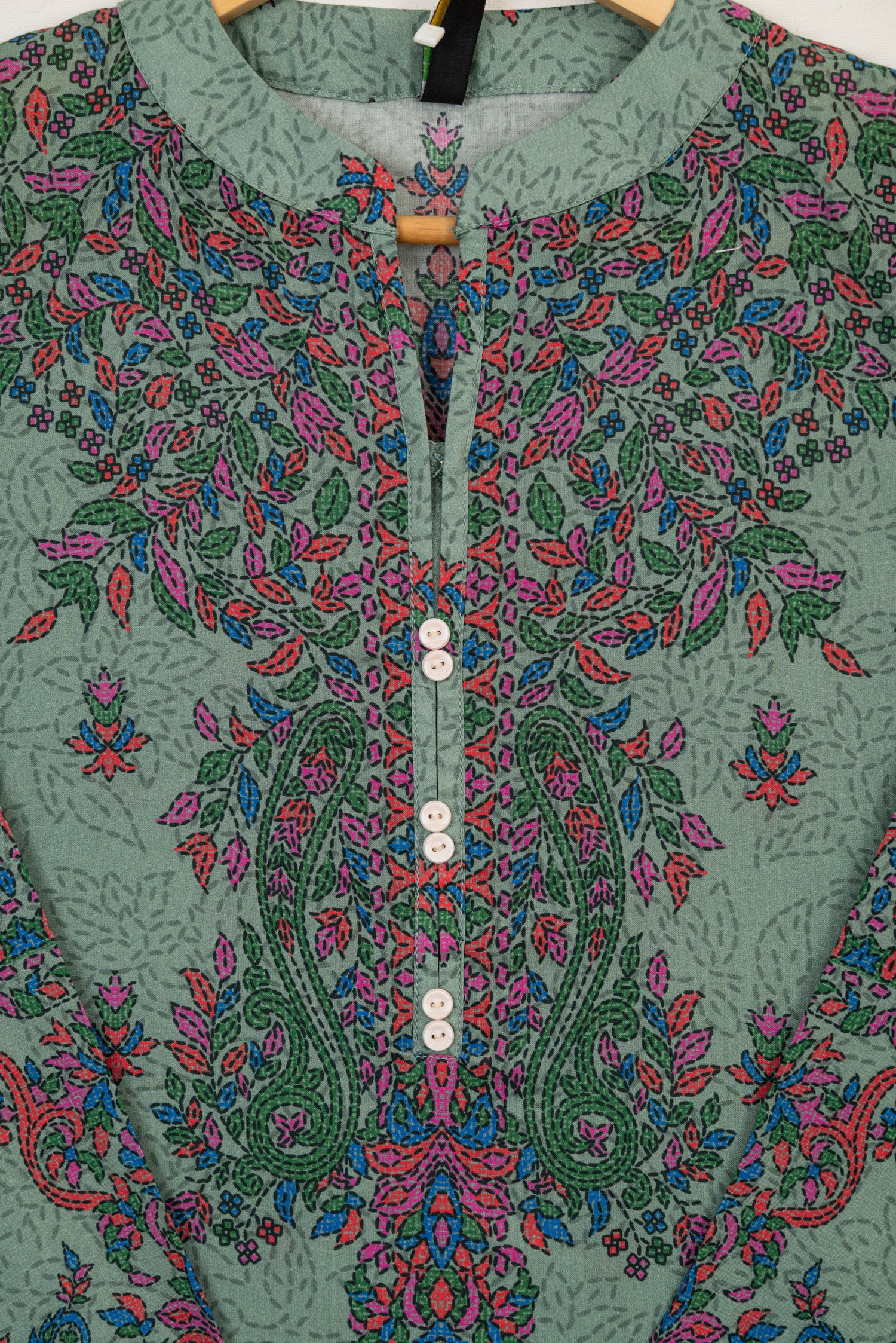 Printed lawn shirt with printed voile dupatta and printed cambric shalwar.