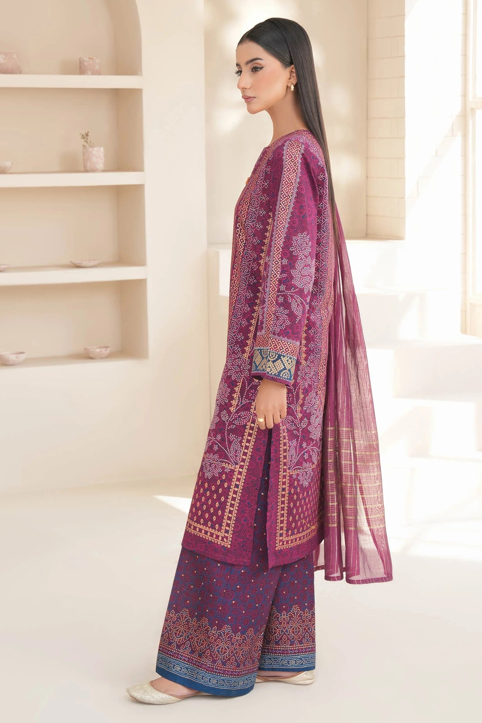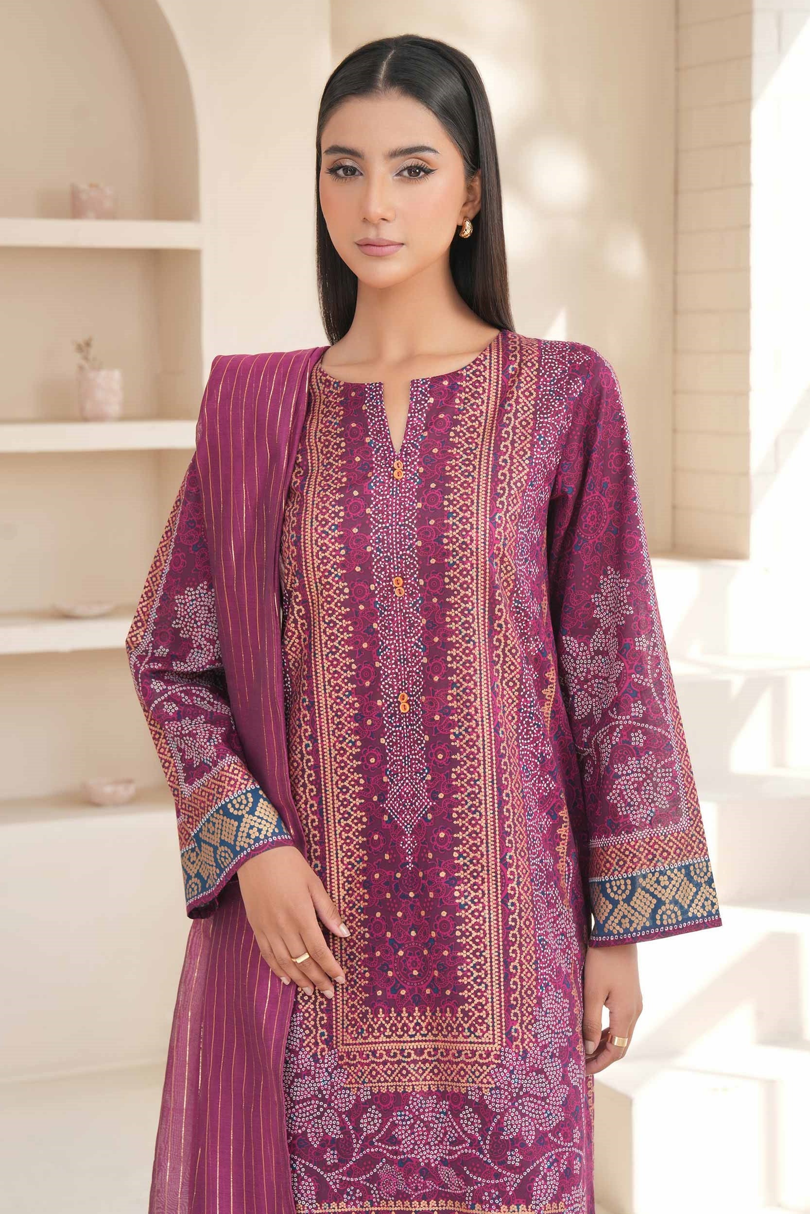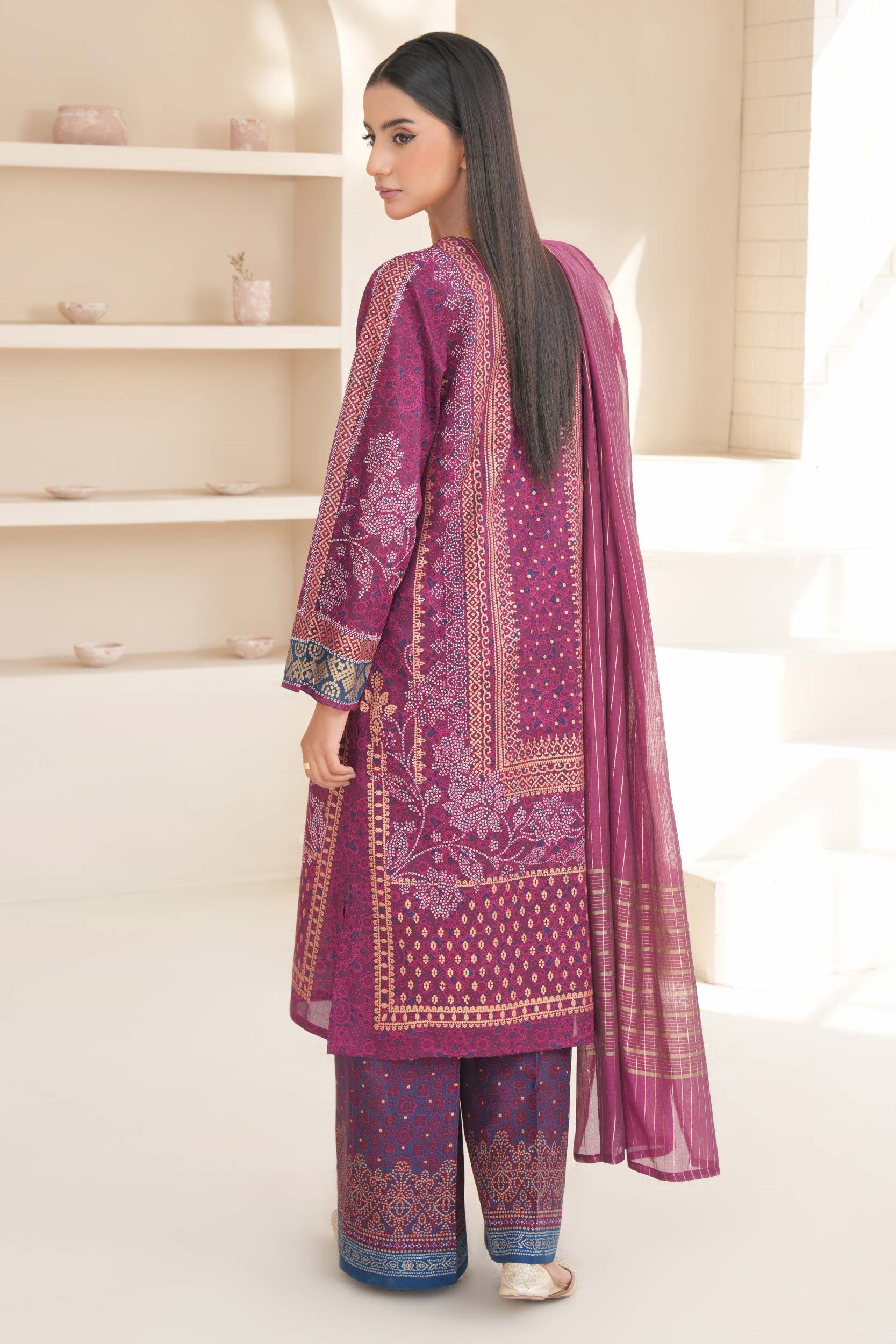Printed lawn shirt with slub monar dupatta and cambric trousers.