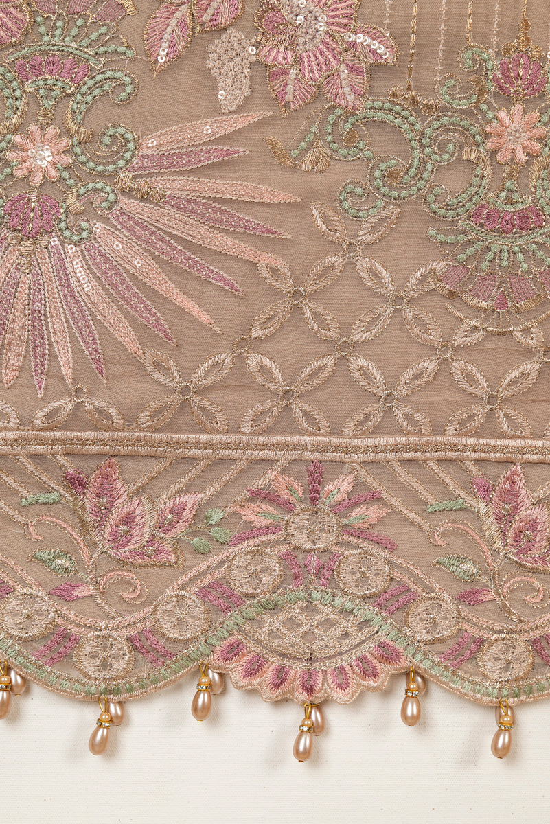 Our dresses are mostly stitched as per the style shown in brands' fashion shoot images. Brands do not supply accessories with their unstitched collections. These are procured separately by us. Therefore, accessories may vary from images depending on availability at the time of stitching.