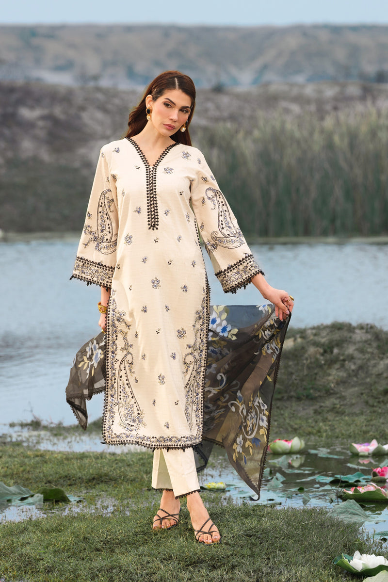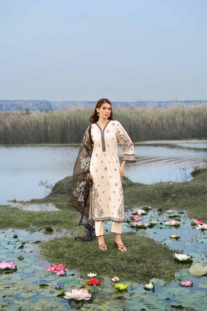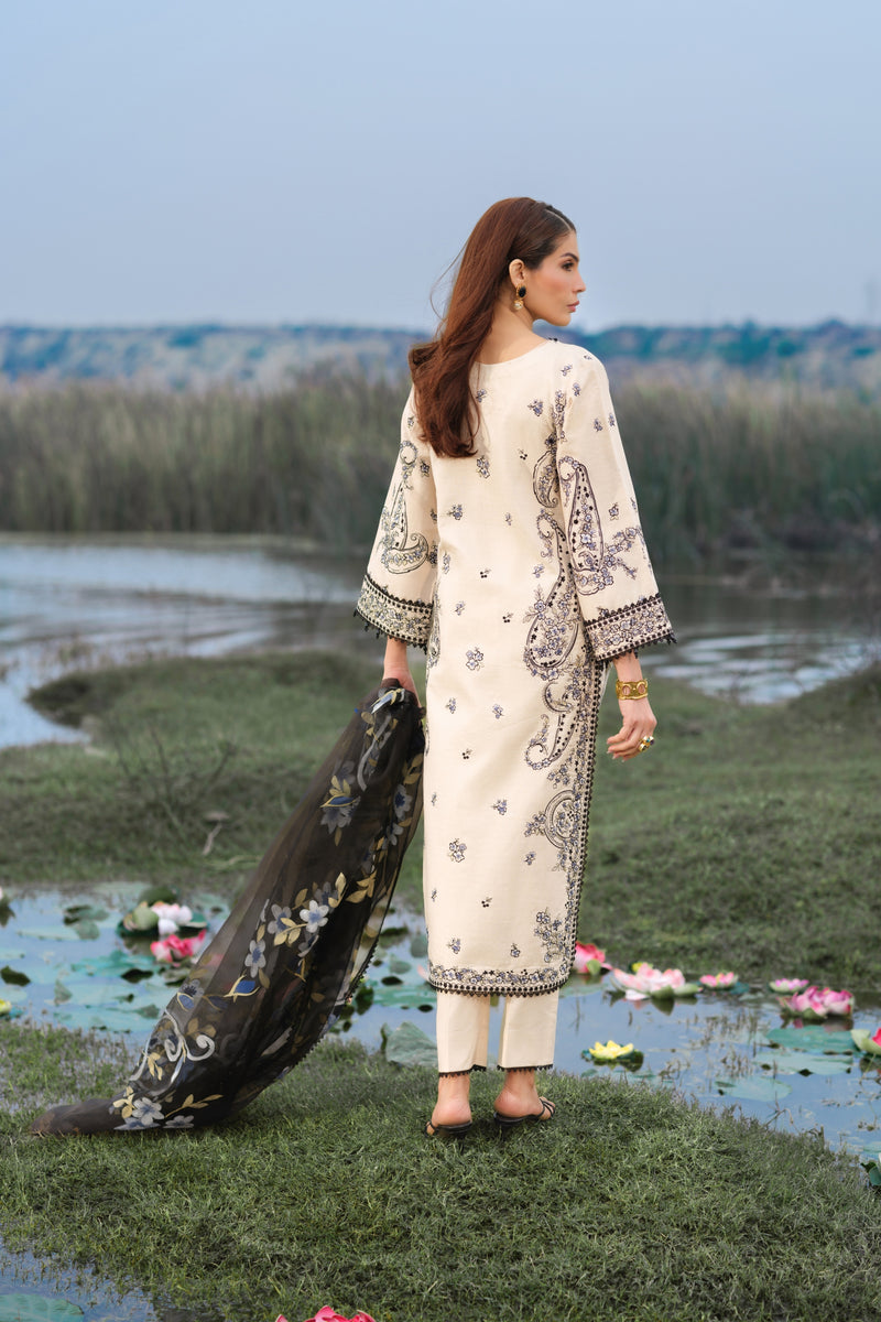 Embroidered jacquard shirt with with cotton trousers and organza dupatta.