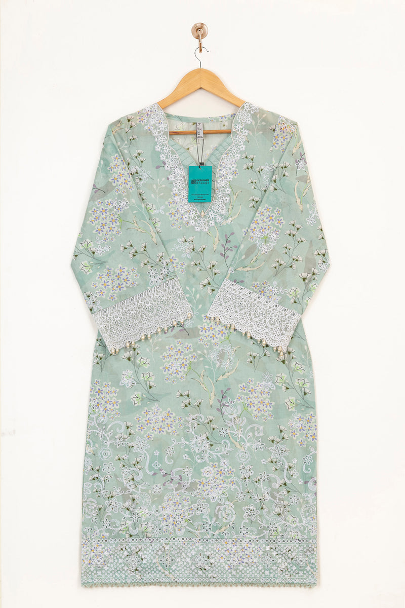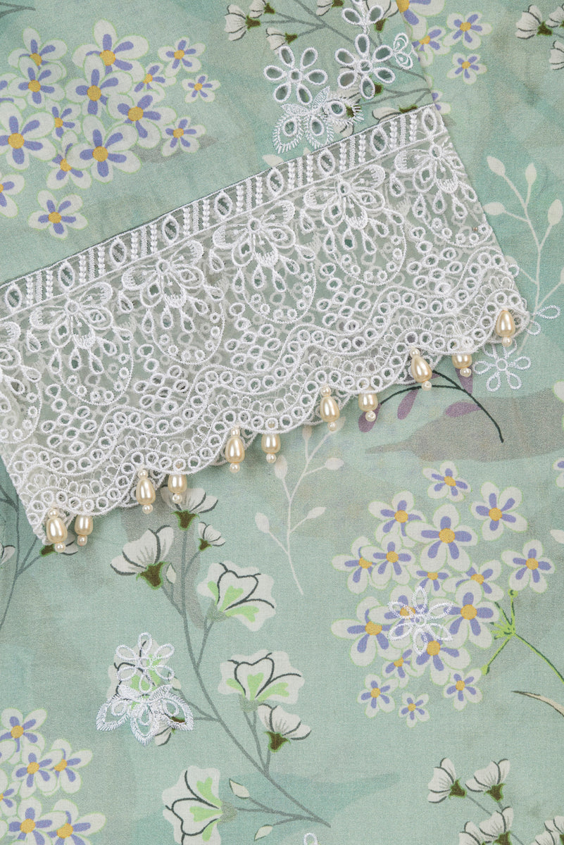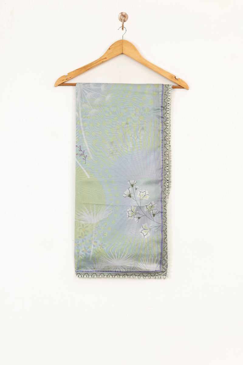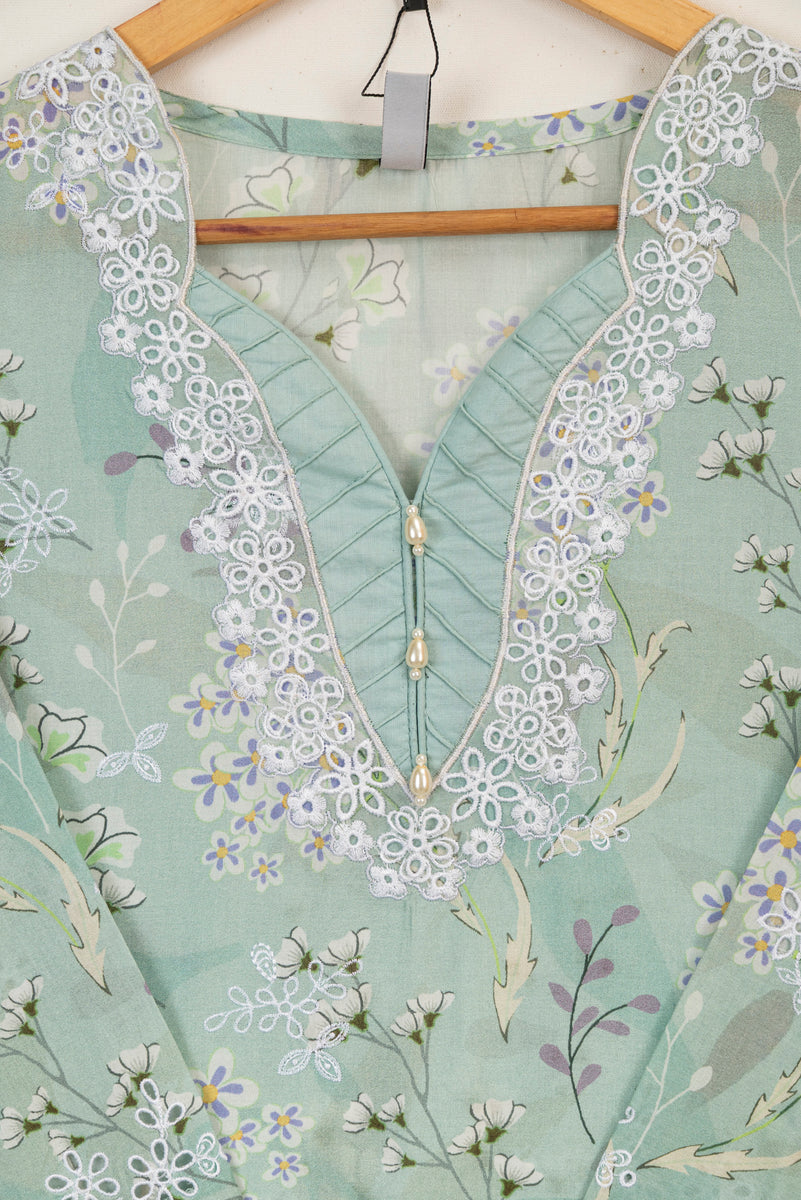 Embroidered printed lawn shirt with cambric trousers and printed silk dupatta.