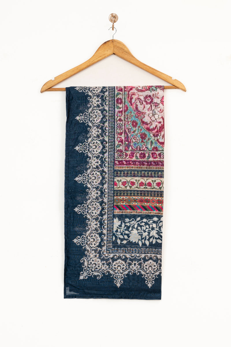 Embroidered and printed lawn shirt with printed slub monar dupatta and cambric trousers.