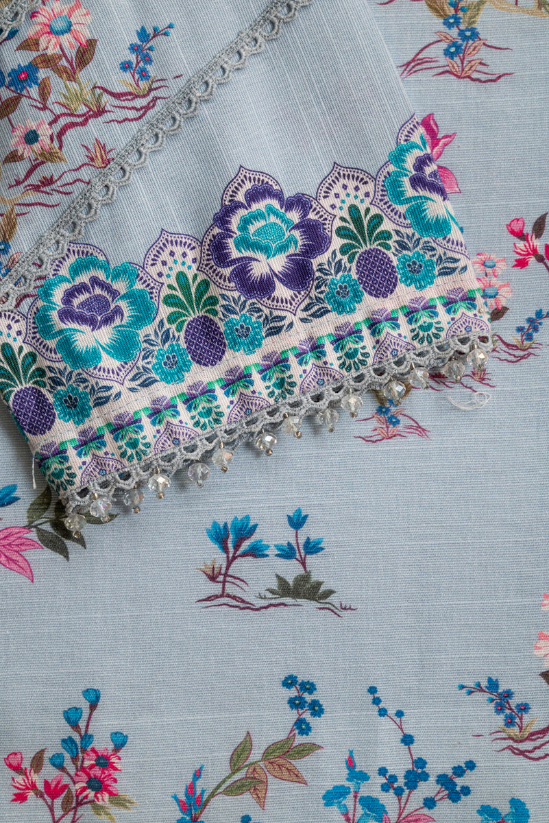 Our dresses are mostly stitched as per the style shown in brands' fashion shoot images. Brands do not supply accessories with their unstitched collections. These are procured separately by us. Therefore, accessories may vary from images depending on availability at the time of stitching.