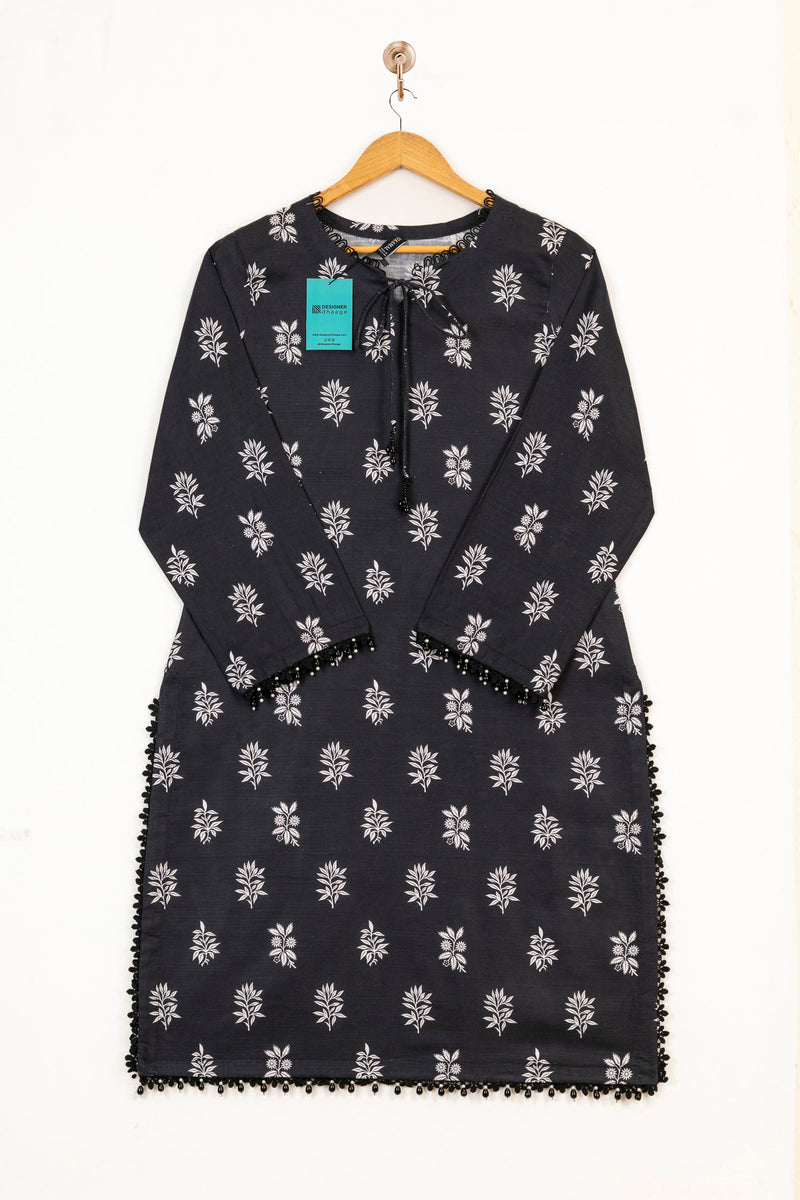 Printed khaddar shirt with printed khaddar trousers and printed khaddar dupatta.
