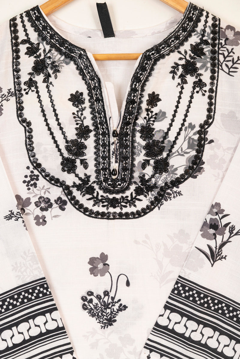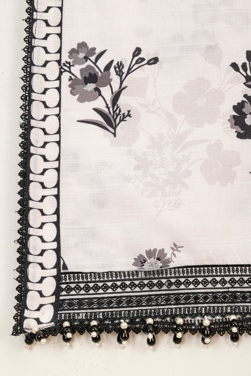 Printed khaddar shirt with printed khaddar trousers and printed khaddar dupatta.