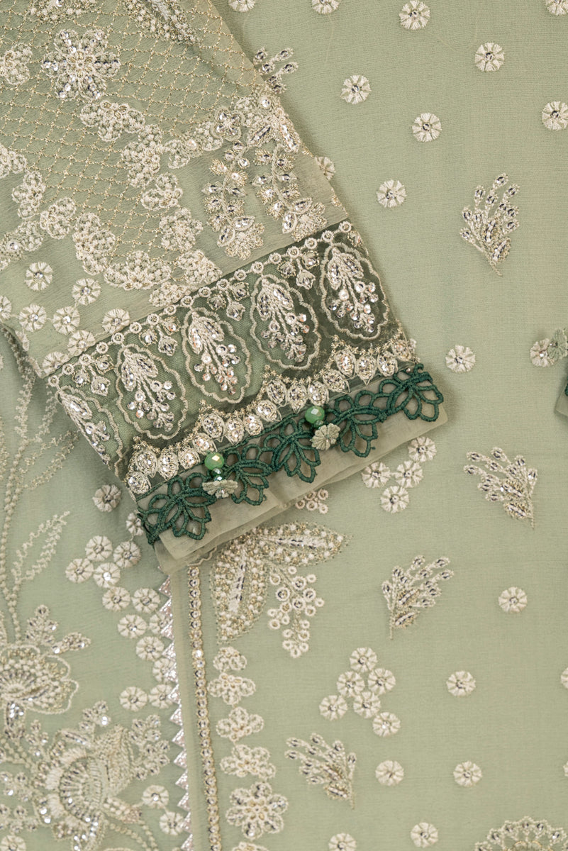 Ready to wear 3 piece chiffon formal suit with lined sleeves. Wedding / Eid / Party occasion wear.
