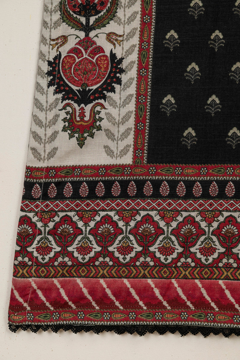 Printed khaddar shirt and dupatta with trousers.