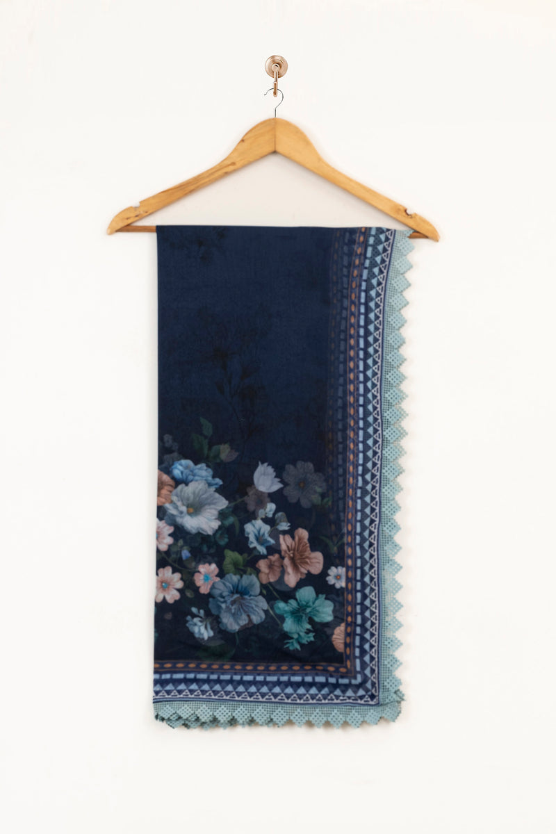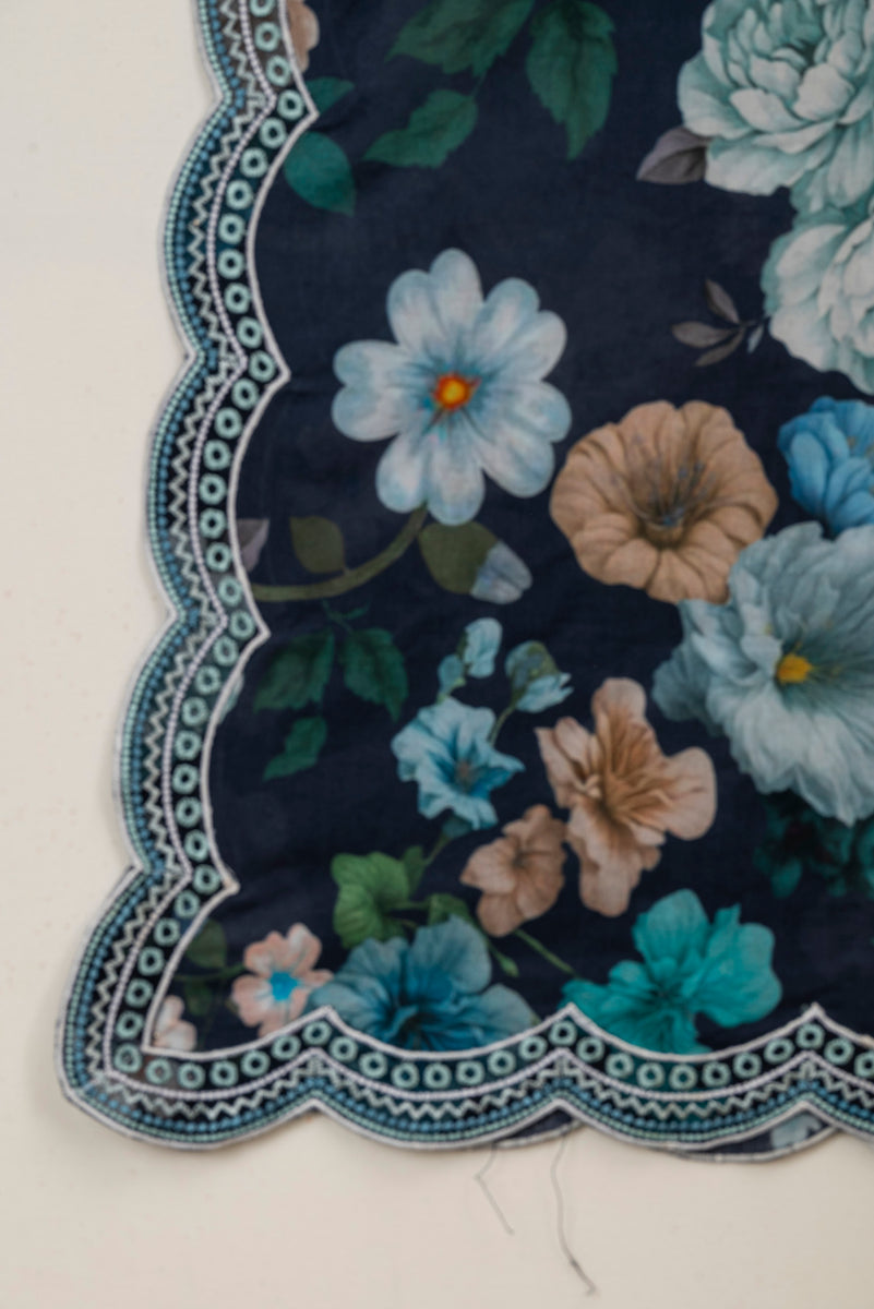 Embroidered printed lawn shirt with cambric trousers and printed chiffon dupatta.