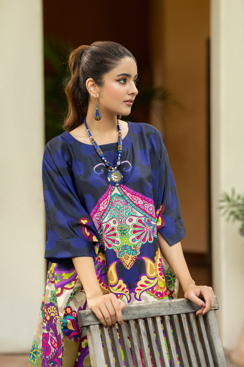 Ready to wear printed raw silk 2-piece co-ord set.