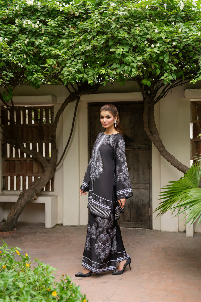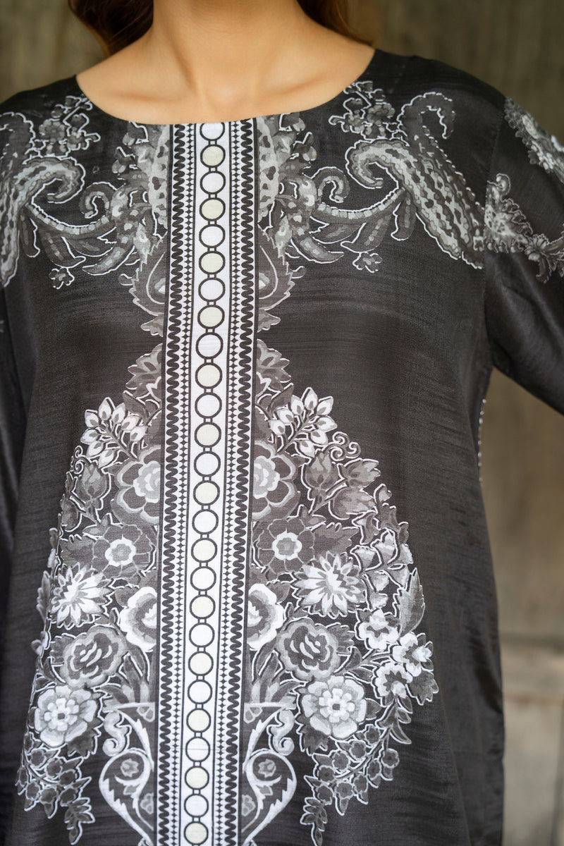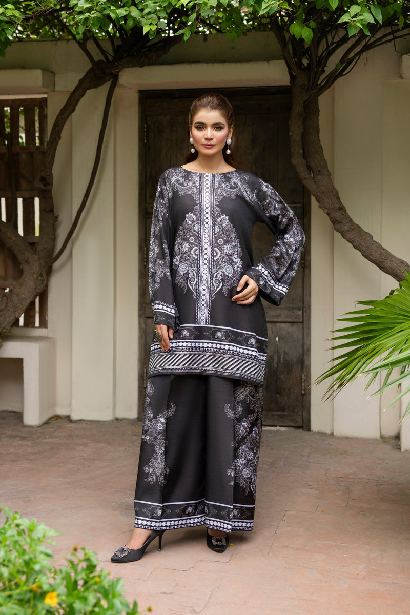 Ready to wear printed raw silk 2-piece co-ord set.