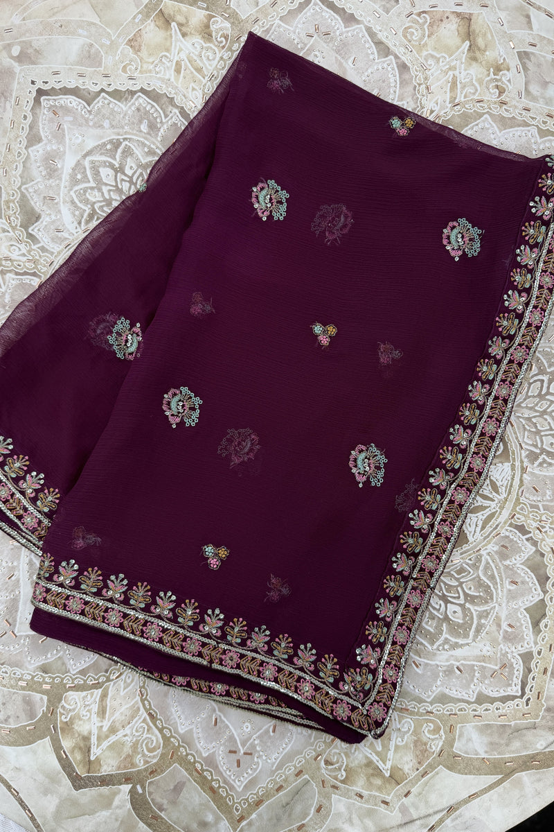 Mihrimah Embroidered Velvet Matt Plum MIH104