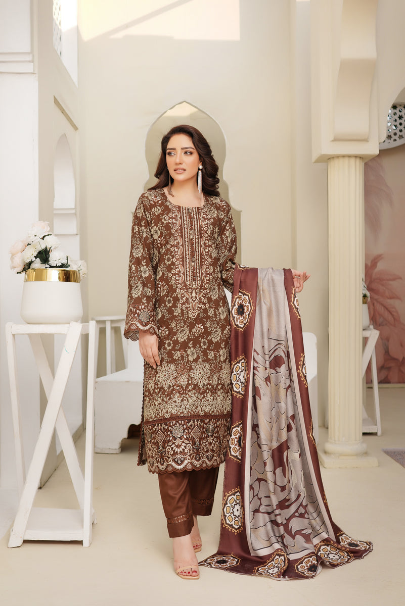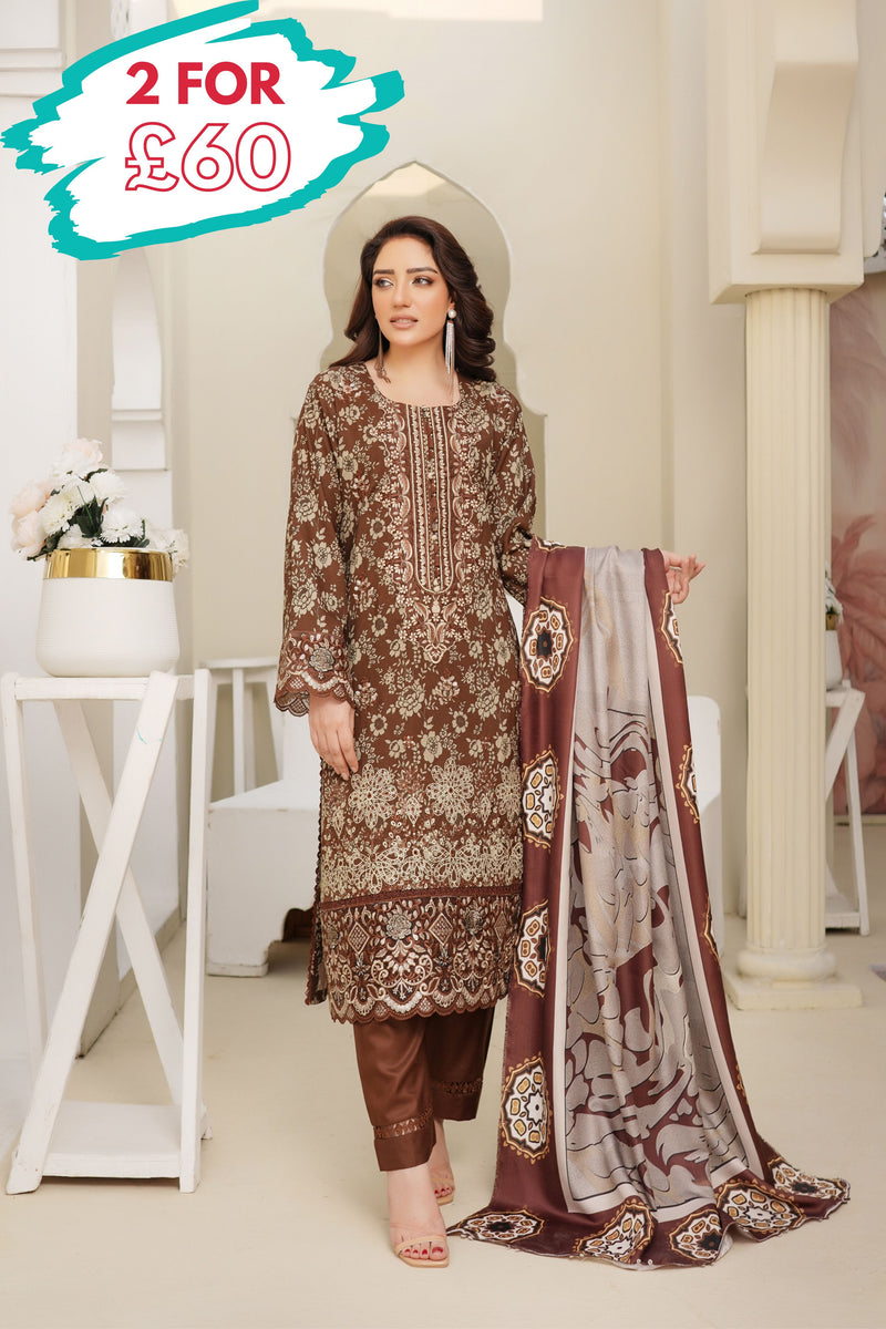 Munira Embroidered Dhanak 3 Piece Suit MUN715