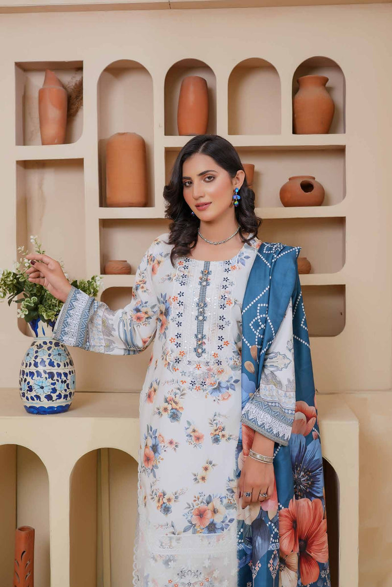 Munira Embroidered Dhanak 3 Piece Suit MUN725