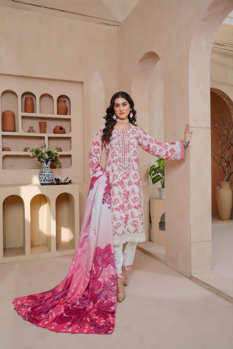 Munira Embroidered Dhanak 3 Piece Suit MUN726