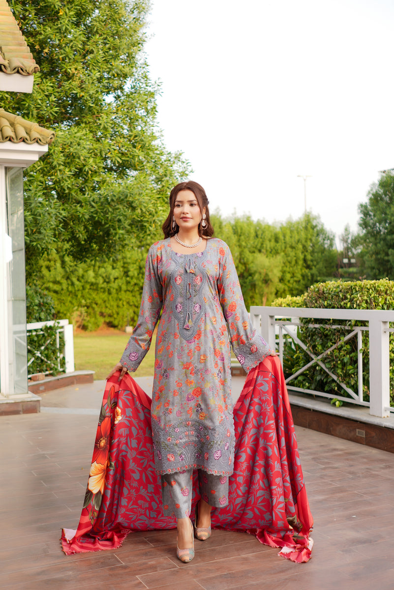 Munira Embroidered Linen 3 Piece Suit MUN689